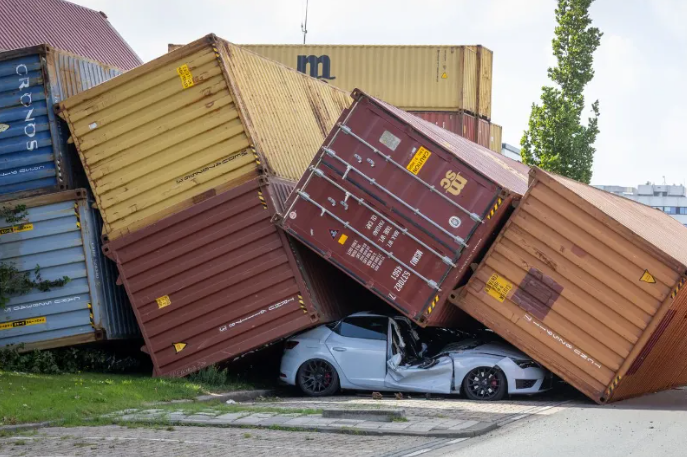 Emergency! Multiple containers collapse in the Port of Rotterdam;